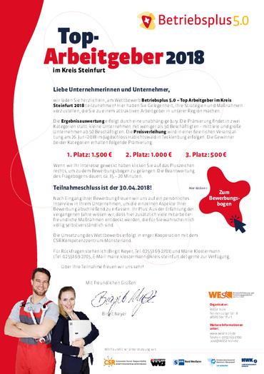 Betriebsplus 5.0 – Top Arbeitgeber im Kreis Steinfurt 2018